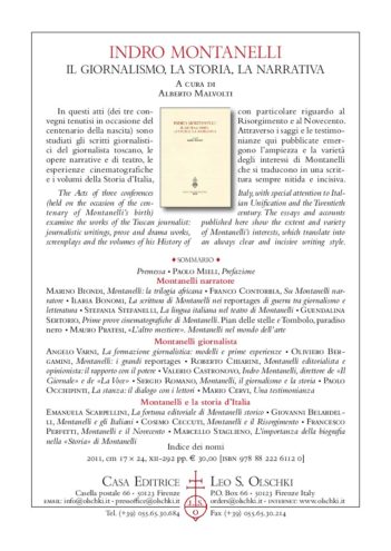 Prospetto e sommario del volume 21/01/2012 by Comitato Fiorentino per il Risorgimento Info Comitato Fiorentino per il Risorgimento Comitato Fiorentino per il Risorgimento – redazione web Post precedente:25 gennaio: Presentazione del libro “Indro Montanelli. Il giornalismo, la storia, la narrativa”