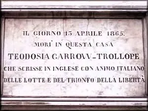 Come recita il testo dell’epigrafe posta sulla facciata del villino Trollope, Theodosia Garrow Trollope “scrisse [davvero] in inglese con animo italiano”: il 27 aprile 1859 inviava alla rivista letteraria The Athenaeum Journal of Literature, Science and the Fine Arts di Londra un testo quanto mai significativo che fin dalle prime parole indicava qual era la posizione dell’autrice: