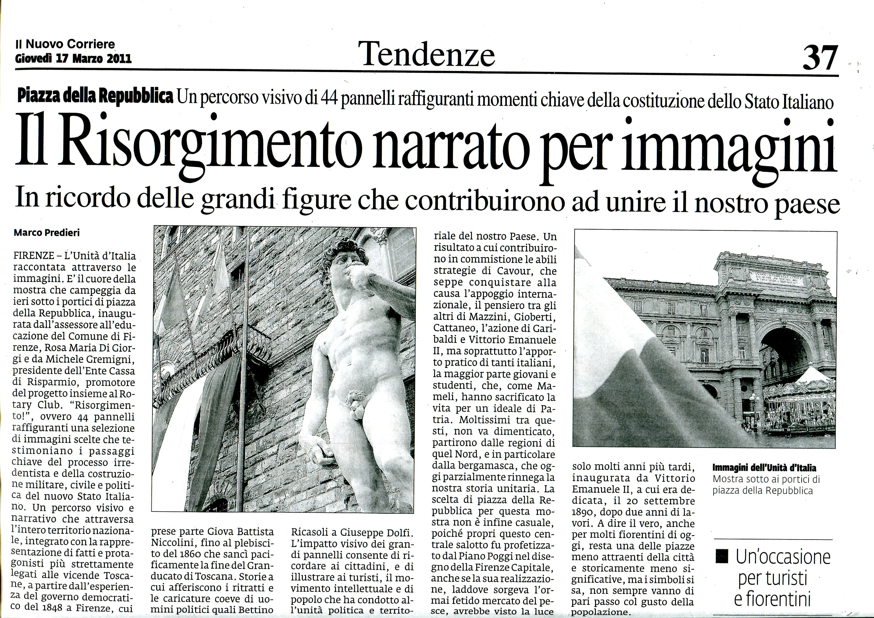 19/03/2011Il Risorgimento narrato per immagini dal Nuovo Corriere di Firenze del 17 marzo 2011 Pubblicato in: MostrePost precedente:Le Ferite della Storia Post successivo:25 marzo: Roberto Cappato – Innografia religiosa ed opera lirica nell’Ottocento