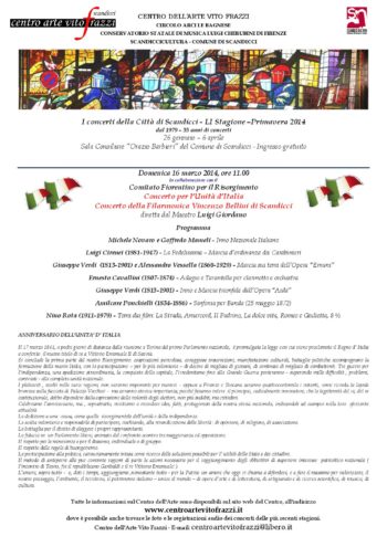 CDAVF – Concerto Unità d’Italia 13/03/2014 by Comitato Fiorentino per il Risorgimento Info Comitato Fiorentino per il Risorgimento Comitato Fiorentino per il Risorgimento – redazione web Post precedente:Celebrazione Unità d’Italia a Scandicci