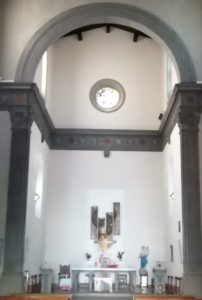 .All’altare dopo l’alluvione del 1966 venne ino collocata un’opera simbolica con figure geometriche tondeggianti e scomposte, a simbolo delle comunità dei fedeli che si ricompongono attorno al sacramento eucaristico. In quell’occasione venne spostato in sagrestia il grande Crocifisso in gesso verniciato di Giuseppe Gronchi ( 1929).