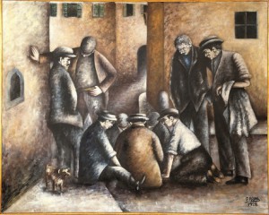 Per quanto concerne la prima sezione, le sale più vaste accolgono la raccolta di origine bancaria del Monte dei Paschi di Siena, che ospita nelle proprie sedi – soprattutto tra Firenze e Siena – fondi oro e dipinti dei maggiori rappresentanti dell’arte senese dal XIV al XIX secolo, ma anche un vasto nucleo di dipinti novecenteschi, arricchitosi soprattutto in seguito all’incorporazione della collezione di Banca Toscana. Se di Felice Carena è la celebre grande tela che raffigura una lezione accademica di nudo, di Ottone Rosai sono opere fondamentali come I giocatori di Toppa, esempio di quella critica alle convenzioni borghesi che si esprimeva attraverso la scelta del popolo come soggetto principale della propria pittura, e di uno stile scarno, antiaccademico, a sottolineare il carattere allo stesso tempo toscanissimo e universale. Di quel candidissimo pittore delle essenza che fu Antonio Donghi è invece Donne per le scale, esempio di “realismo magico” che caratterizza molta pittura italiana tra le due guerre, mentre di Gino Severini uno dei pannelli dipinti nel 1928 per l’abitazione parigina del mercante Léonce Rosenberg, incentrato sul tema del circo e delle maschere italiane caro al pittore in questi anni. E poi anche nature morte (un singolare De Pisi) e paesaggi (un raro Morandi) offrono dimostrazione di una coerenza di scelte collezionistiche, da cui esula inaspettatamente un’opera giovanile di Burri, una tela realizzata con frammenti di stoffe.