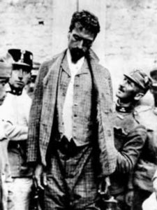Volontario, catturato in montagna, il 12 luglio 1916 Cesare Battisti viene impiccato nel Castello del Buonconsiglio di Trento. Quel giorno Ernesta è a Padova, dove in un crescendo di angoscia e presentimenti la raggiungono notizie confuse, che danno Cesare prima caduto sul fronte, poi prigioniero. Apprende con certezza dell’esecuzione solo cinque giorni dopo, il 17 luglio. Le fotografie degli ultimi momenti di Battisti e degli austriaci che ridono attorno al cadavere indigneranno mezza Europa.