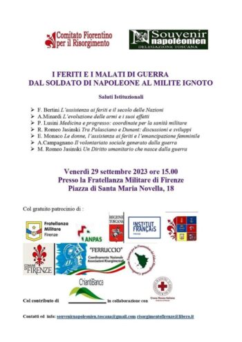 Il Comitato Fiorentino per il Risorgimento e il Souvenir napoléonien toscano organizzano il convegno “I feriti e i malati di guerra dal soldato di Napoleone al milite ignoto”.