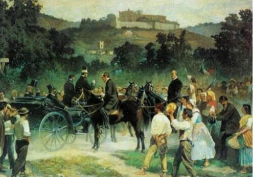 Luigi Norfini Visita del Re Vittorio Emanuele al Castello di Brolio 1870