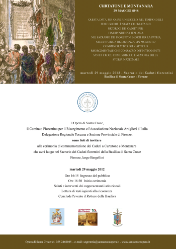>> La locandina 25/05/2012 by Comitato Fiorentino per il Risorgimento Info Comitato Fiorentino per il Risorgimento Comitato Fiorentino per il Risorgimento – redazione web Post precedente:La battaglia di Curtatone e Montanara del 29 maggio 1848 : una data da non dimenticare
