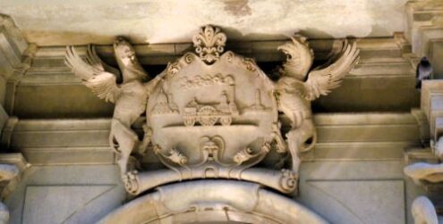 Cosa ci fa una locomotiva a vapore in uno stemma gentilizio? È quello che si chiedono molti che, passando davanti al Palazzo Fenzi-Marucelli, in via San Gallo 10 a Firenze, oggi sede di un dipartimento dell’Università, notano uno stemma sorretto da due grifoni alati. All’interno una locomotiva tra le sagome della cupola del Duomo di Firenze e della torre del Fanale di Livorno. Un’immagine piuttosto insolita, inserita com’è in un bel palazzo secentesco progettato da Gherardo Silvani, bravissimo continuatore del manierismo toscano e delle fantasiose immagini di Bernardo Buontalenti.