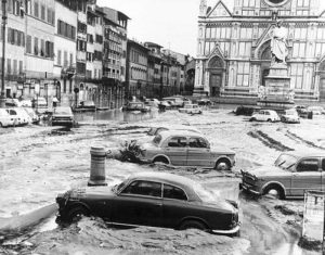 ** FILE ** Image shows the square in front of the Basilica of Santa Croce after the banks of the River Arno overflowed and flooded the city in this Nov. 5, 1966 black and white photo. Saturday Nov. 4, 2006 marks 40 years of the flood. (AP Photo)