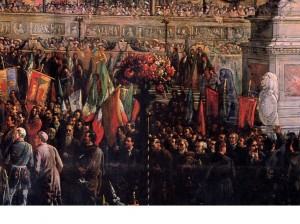 La cerimonia del maggio del 1865 ha anche però un significato simbolico e politico con un forte valore di attualità, se reinterpretato alla luce della situazione politica dell’Italia dei nostri tempi.