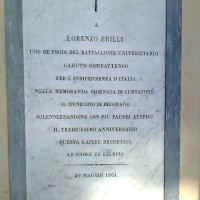 Sempre in Sant’Onofrio, c’è anche la tomba dove riposa un suo compaesano, Lorenzo Brilli di Dicomano, che morì nella battaglia di Curtatone e Montanara, soldato-studente agli ordini del conte Francesco Pecori Giraldi di Borgo San Lorenzo, che guidò appunto i volontari di Firenze a Curtatone. Due personaggi diversi, apparentati dall’amor di patria e onorati da due lapidi, una accanto all’altra, sulla facciata di questo oratorio di forme neo- classiche che si incontra uscendo da Dicomano, percorrendo la strada che porta a Forlì.