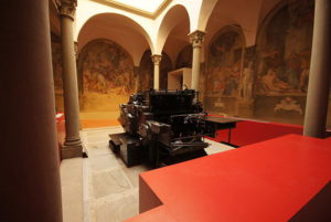 All’esterno, sopra la porta d’accesso al chiostro, si trova una lunetta in terracotta invetriata di Santi Buglioni, raffigurante l’Annunciazione fra due confratelli incappucciati. All’interno si trovano una serie di ambienti preceduti da un chiostro, decorati nel tardo Cinquecento dai più rappresentativi artisti fiorentini tra il 1585 e il 1590: Bernardino Poccetti, Giovanni Balducci, Bernardino Monaldi, Andrea Boscoli, Bartolomeo Traballesi e Giovan Battista naldini con Martiri degli apostoli (nel chiostro), Scene della Passione di Cristo e della Vita della Vergine. Il ciclo è un importante esempio di pittura devozionale controriformata: i caratteri delle raffigurazioni sono espliciti e chiari, con una componente emotiva coinvolgente. Gli affreschi vennero danneggiati durante l’alluvione di Firenze; staccati e restaurati furono ricollocati nel 1989.