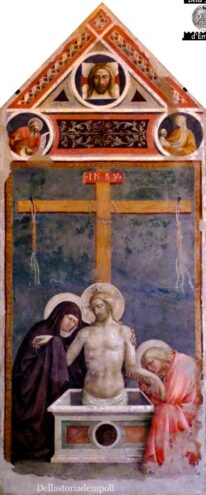 Il percorso inizia al piano terra, dove, oltre ad alcune opere scultoree di grande pregio, come l’elegante Madonna col Bambino di Mino da Fiesole, sono esposti il Fonte battesimale attribuito a Bernardo Rossellino e lo straordinario affresco staccato raffigurante il Cristo in pietà di Masolino da Panicale. A Empoli, altre testimonianze dell’opera di questo celebre artista si possono trovare nella Cappella di Sant’Elena della vicina Chiesa di Santo Stefano degli Agostiniani, parte del percorso museale.