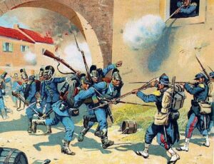 Uno scontro tra soldati bavaresi (a sinistra) e francesi durante la guerra francoprussiana del 1870-71 in un’opera dell’artista tedesco Richard Knötel . Da quella guerra nacque la Terza Repubblica francese