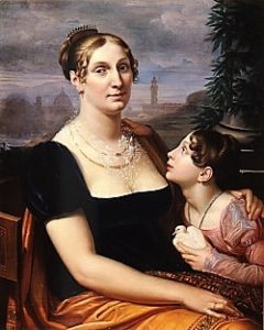 Il dominio napoleonico in Toscana è quindi rappresentato inoltre dalla figura di Elisa Baciocchi, sorella minore del Bonaparte e da lui insignita del titolo di Granduchessa nel 1809: la sovrana è magnificamente ritratta nel 1814 da Giuseppe Bezzuoli, assieme alla figlia Elisa Napoleona, sullo sfondo di una Firenze crepuscolare, quasi un presagio dell’imminente fine del suo breve governo in Toscana.