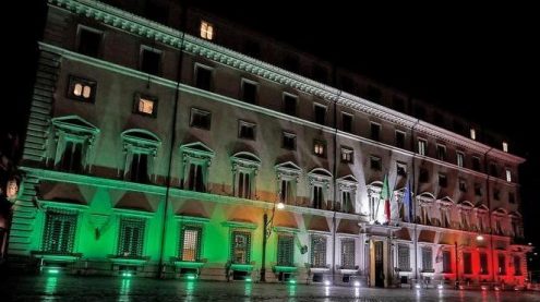 Palazzo Chigi illuminato per l%u2019anniversario dell%u2019unità d%u2019 Italia