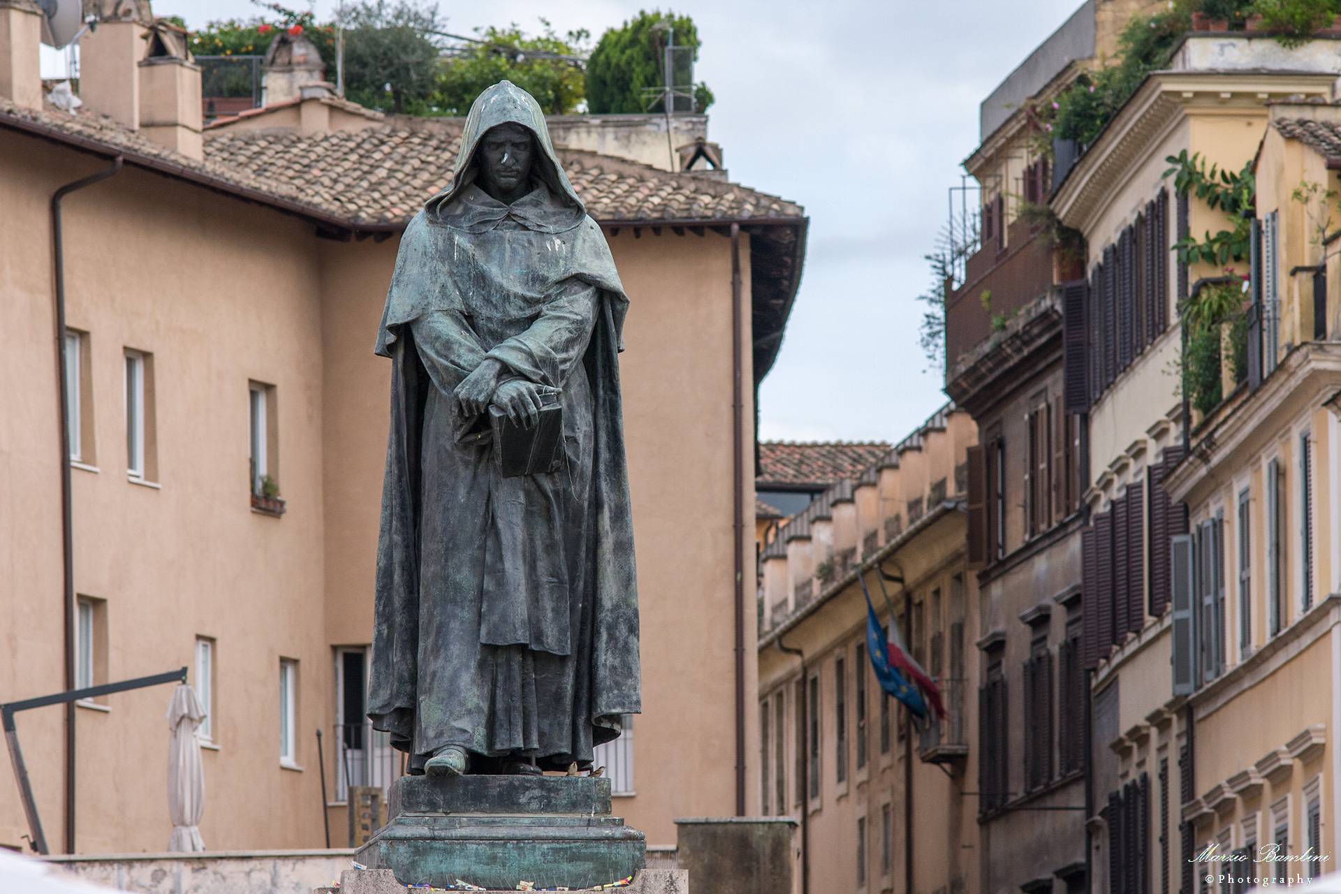 Su un lato del giardino si trova un piccolo monumento a ricordo di tre partigiani caduti il 7 giugno 1944, Enrico Bocci, Italo Piccagli e Luigi Morandi, tutti decorati dalla medaglia d’oro al valor militare, uccisi dai fascisti che scoprirono il covo da dove trasmettevano Radio Cora, in uno degli edifici della piazza.