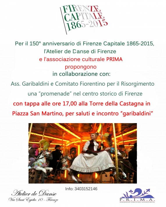 06/02/2015Per il 150° anniversario di Firenze Capitale l’Atelier de Danse si terrà una Promenade nel centro storico di Firenze. Pubblicato in: Primo pianoTag: Firenze capitalePost precedente:Mostra “Una Capitale e il suo Architetto. Eventi politici e sociali, urbanistici e architettonici. Firenze e l’opera di Giuseppe Poggi” Post successivo:L’Islam non ci chieda di limitare la libertà